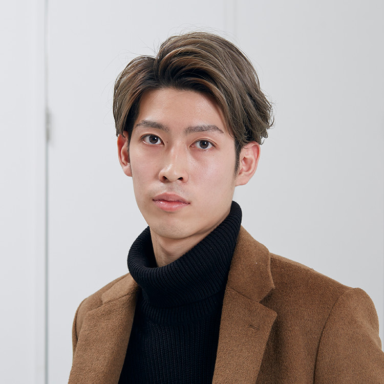 造型重點吹乾後,將雅痞髮醬均勻塗抹於整頭。以手指將瀏海往上梳抓出髮流,揉捏髮束中段部分,打造出空氣蓬鬆感,最後仔細調整整體外型。