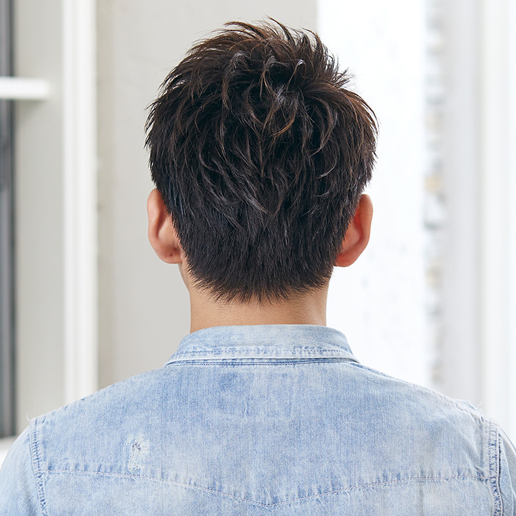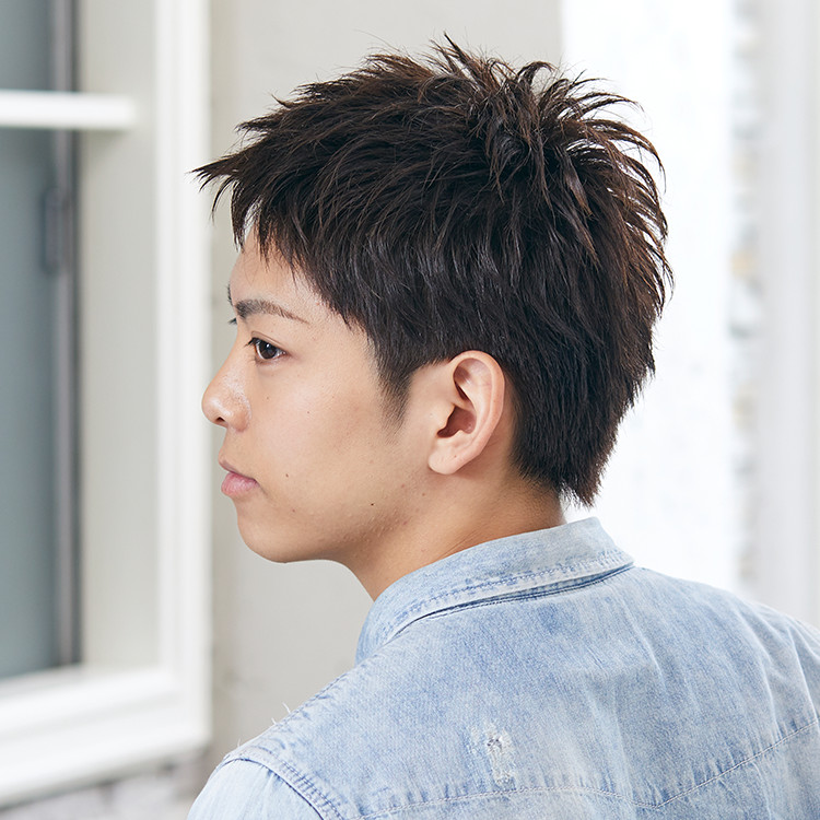 基本剪法維持刺蝟頭根根分明質感的同時,盡量不要有太多線條感,才能打造出簡約風格的髮型。營造出的高雅品味,替俏皮活潑的極短髮,增添一股冷靜的成熟韻味。此外,搭配旁分造型,也讓整體風格多了時尚感與趣味玩心。
